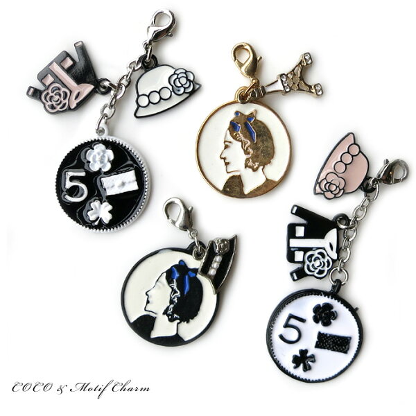 COCO 横顔 プレート モチーフ チャーム NO.5 エッフェル塔 きらきら 帽子 服 ジャケット PARIS パール バッグチャーム イニシャル パーツ バッグ ゴールド シルバー スマホピアス ストラップ キーホルダー イヤホンジャック ラインストーン ダブルスリー ネコポスOK新登場♪